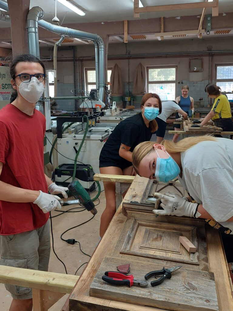 The opportunity to work with the experienced carpenter and restorer Matija Hiršenfelder in his workshop in the medieval town of Škofja Loka is one that will stay in my memory forever. Matija taught us to work in the most ergonomic way, telling us not to ‘work like bananas’ and that we must ‘listen to our work’. He never showed signs of frustration when we didn’t know which type of sandpaper to use for which part of the door, or when we did everything three times slower than him. Watching him work every day with so much joy, pride, and knowledge of his craft, I felt like he was changing the world one door at a time. It also convinced me that regardless of the job I’ll have after graduation, I want to experience the enthusiasm he had for his work.